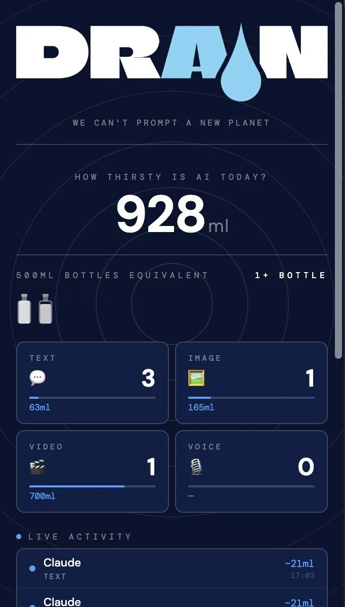 Meet DRAIN, the Chrome extension that tracks your AI water usage in real time.